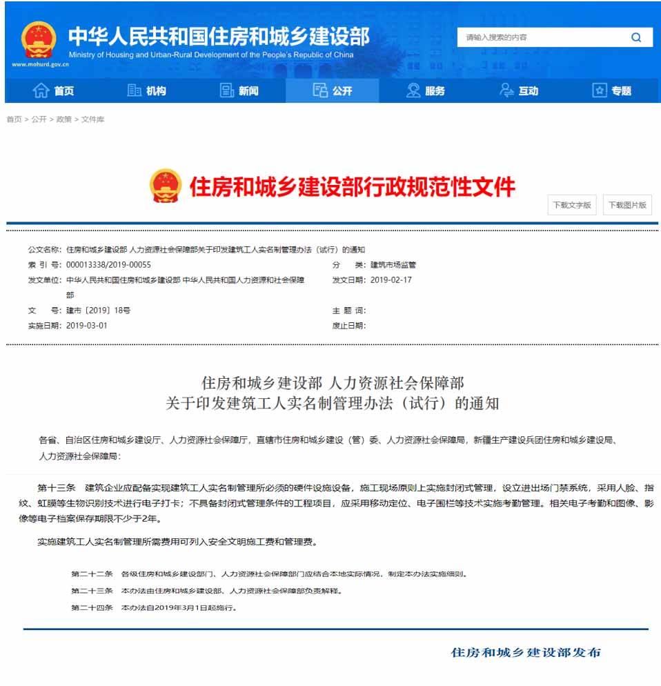 (圖:住建部2019年推行《建筑工人實名制管理辦法(試行)》)