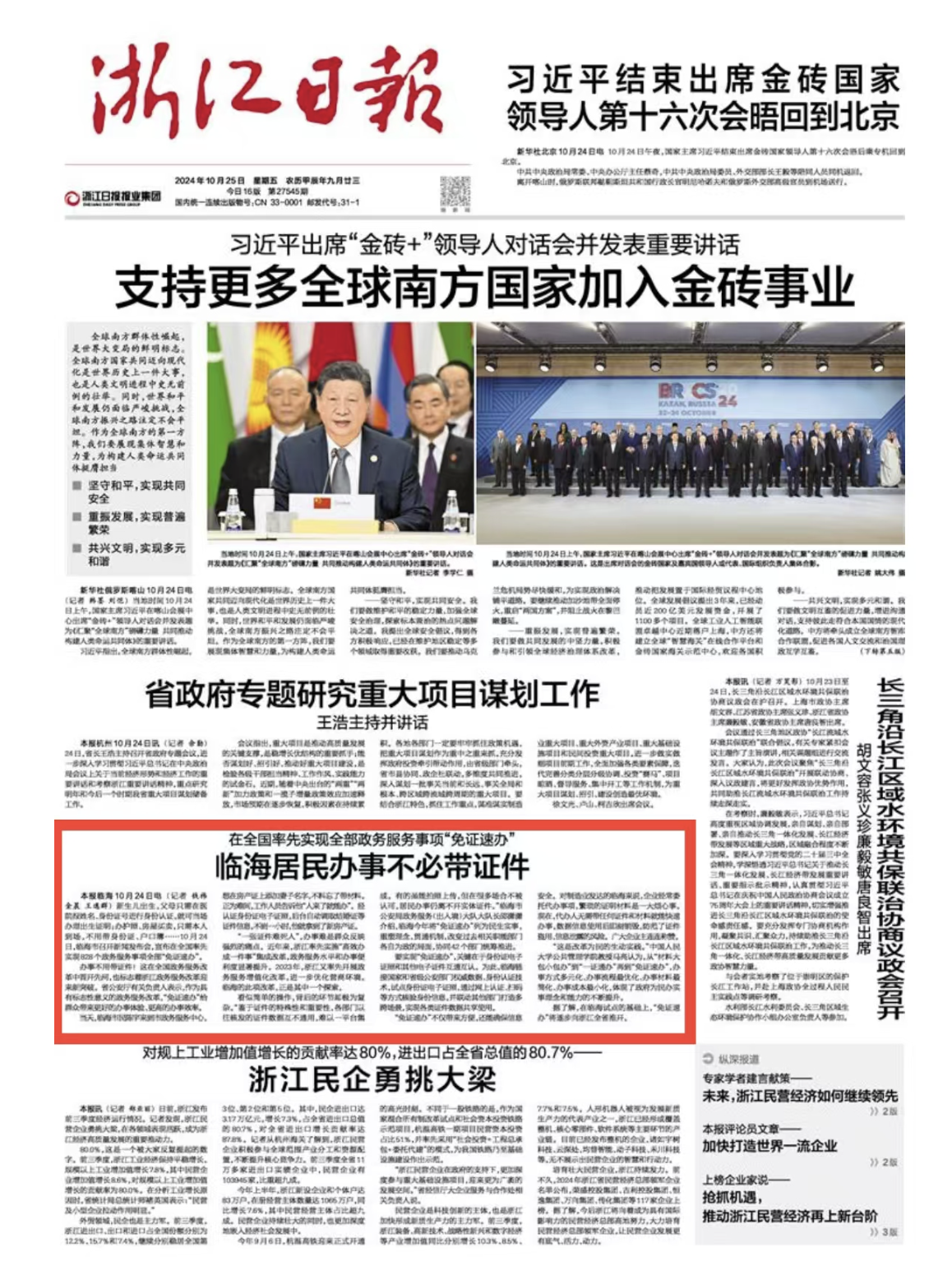 據(jù)了解,在臨海試點(diǎn)基礎(chǔ)上,“免證速辦”將逐步向浙江全省推開。